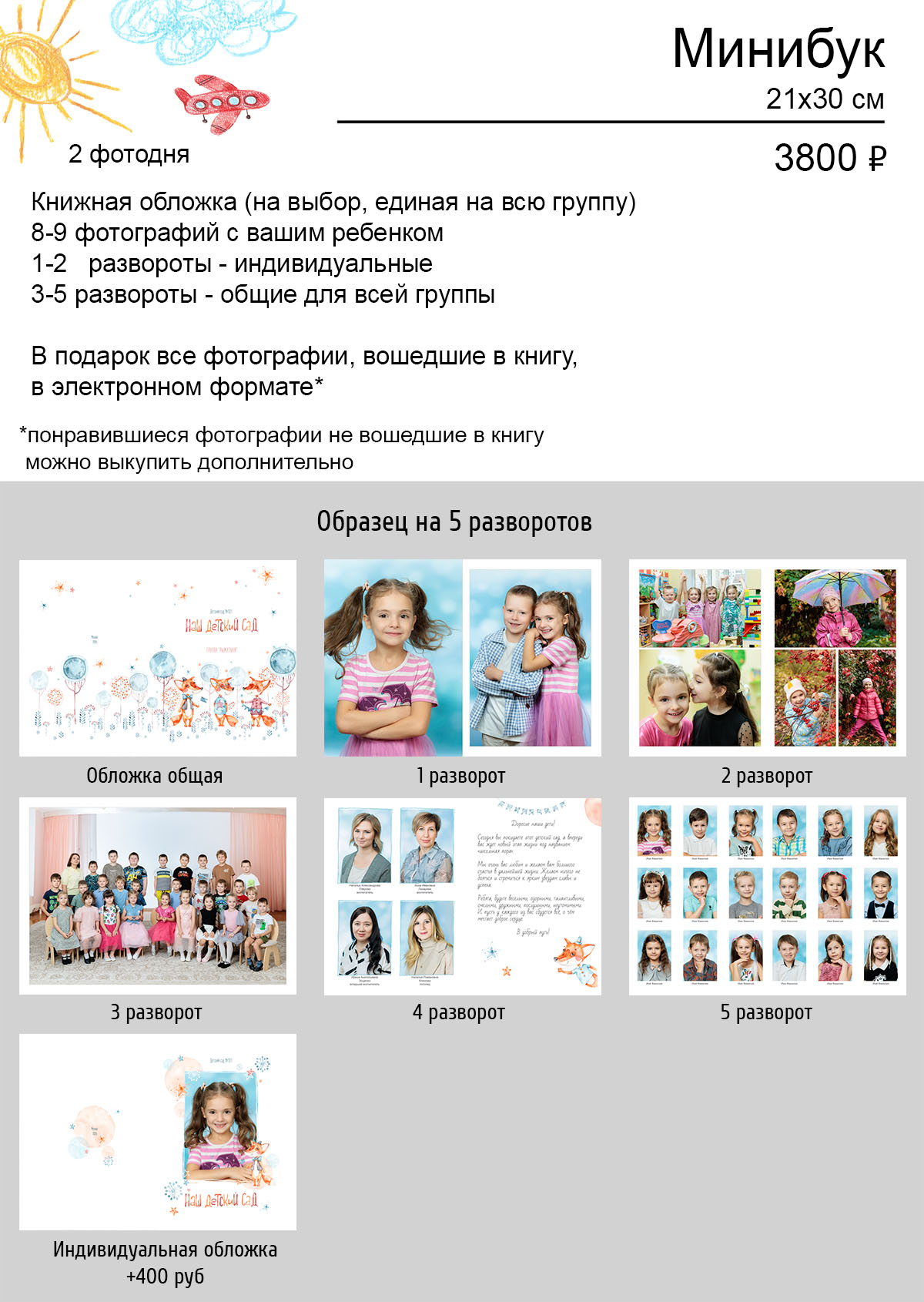 Бонус: При заказе от 2-х параллельных групп детского сада индивидуальная обложка (с портретом вашего ребенка) бесплатно!